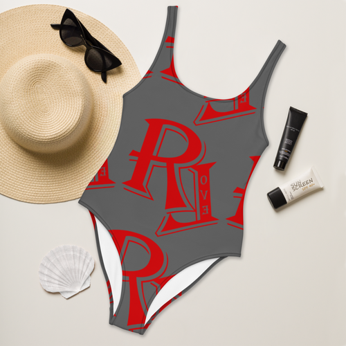 Revolution One-Piece Grey Swimsuit w/Red Logo